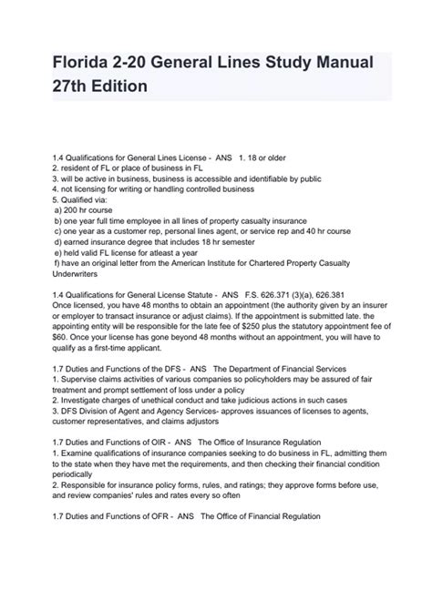 Free PDF FLORIDA GENERAL LINES STUDY MANUAL Nook Library Genesis